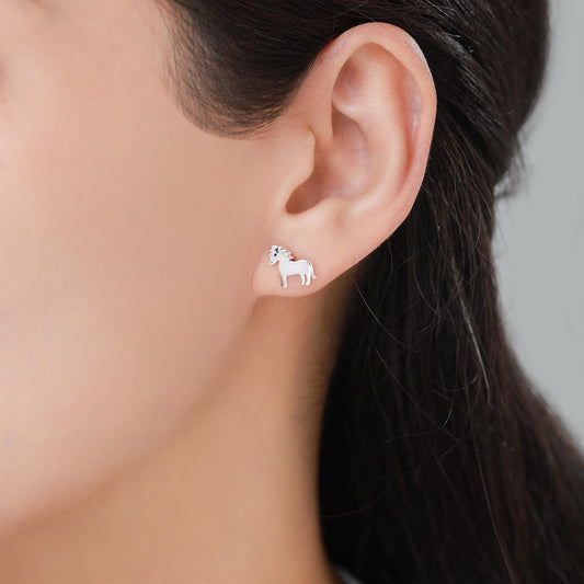 Shetland Pony Stud Earrings in Sterling Silver, Silver or Gold or Rose Gold, Sterling Silver Cute Baby Horse Earrings, Farm Earrings