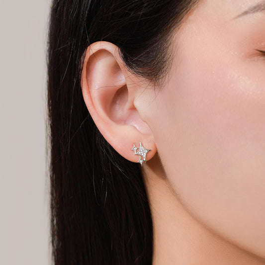 Sparkly Stars CZ Stud Earrings in Sterling Silver, Four Point Star Earrings, Silver or Gold, Three Star Earrings, Celestial Earrings