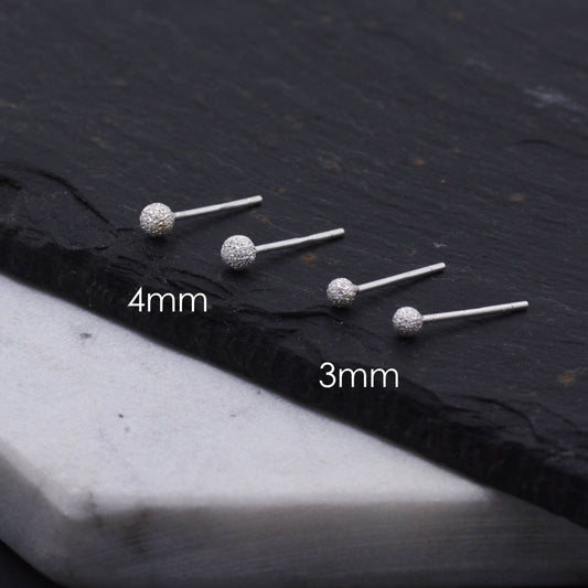 Frosted Sterling Silver Ball Tiny Stud Earrings Textured Finish Simple Minimalist Everyday Style - Geometric Jewellery O22