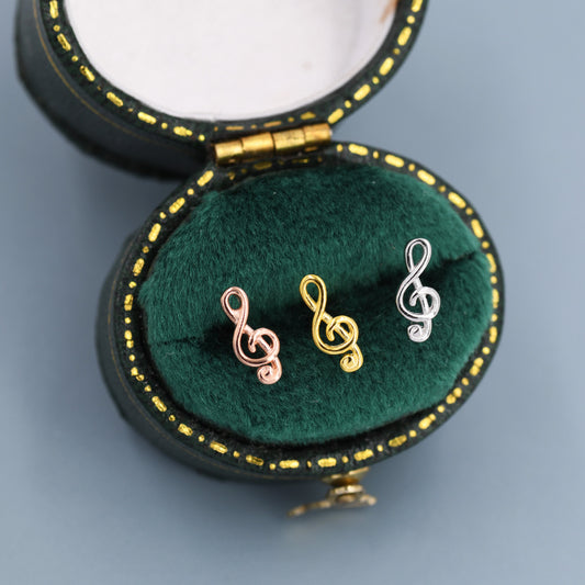 Treble Clef Stud Earrings in Sterling Silver, Music Stud Earrings , Silver Gold or Rose Gold, Musical Earrings