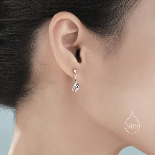 Giraffe Drop Stud Earrings in Sterling Silver, Silver or Gold, Giraffe Dangle Earrings, Giraffe Drop Earrings, Sterling Silver Giraffe