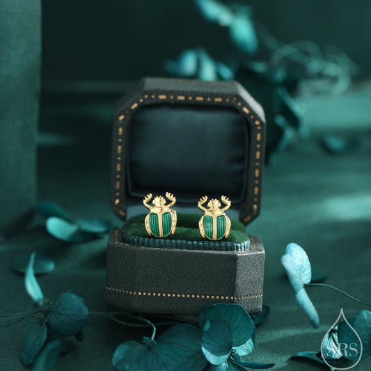 Tiny Scarab Beetle Stud Earrings in Sterling Silver with Enamel, Silver or Gold or Rose Gold, Egyptian Scarab Beetle Earrings, Bugs Earrings