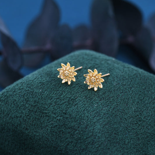 Chrysanthemum Flower Stud Earrings in Sterling Silver, Silver or Gold, Nature Inspired Flower Earrings, November Birth Flower, Botanical