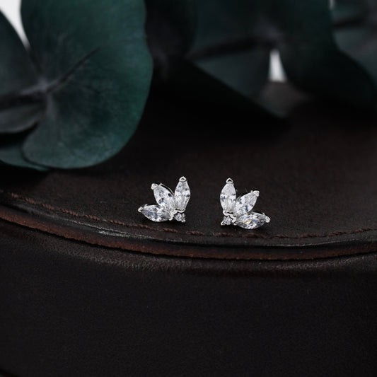 Sterling Silver CZ Marquise Cluster Stud Earrings, Gold or Silver, Marquise Fan Stud, CZ Crown Stud, Three Marquise Stud