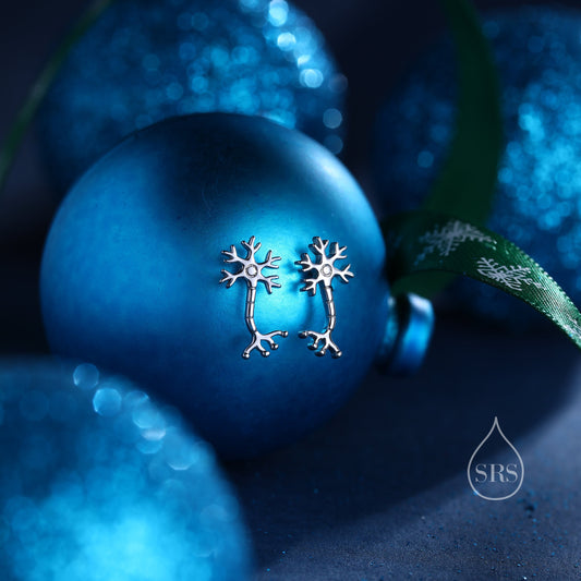 Tiny Neuron Cell Stud Earrings in Sterling Silver, Silver or Gold, Neurone Cell Earrings, Nerve Cells Earrings, Brain Earrings