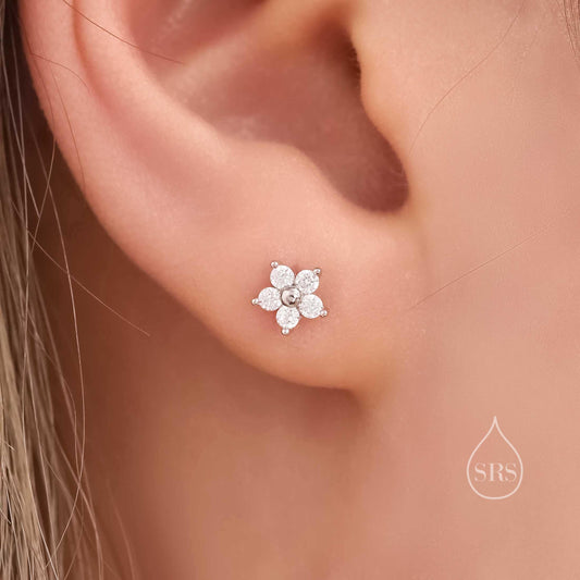 Tiny Hydrangea Bouquet CZ Stud Earrings in Sterling Silver, Silver, Gold or Rose Gold, Three CZ Flower Earrings, CZ Cluster Earrings