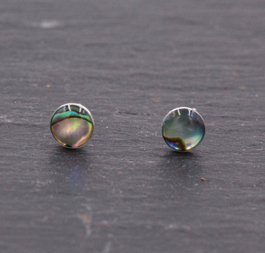 Sterling Silver Super Cute Dainty Little Circle Disk Dot Stud Earrings, Sea Abalone Paua Shell, Minimalist Geometric Design H14