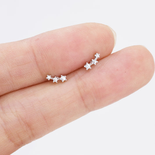 Extra Tiny CZ Trio Stud Earrings in Sterling Silver, Silver or Gold, Geometric Tiny Three Star CZ Earrings, Stacking Earrings