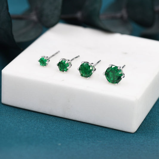 Emerald Green CZ Stud Earrings in Sterling Silver, Available in 3mm 4mm 5mm 6mm, Brilliant Cut Emerald Green CZ Earrings, Prong Set