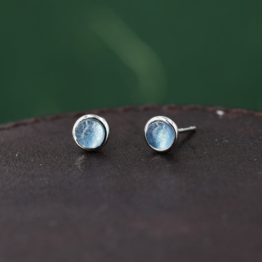 Sterling Silver Aquamarine Bezel Stud Earrings, 4mm Genuine Aquamarine Stone, Semi-precious Jewellery