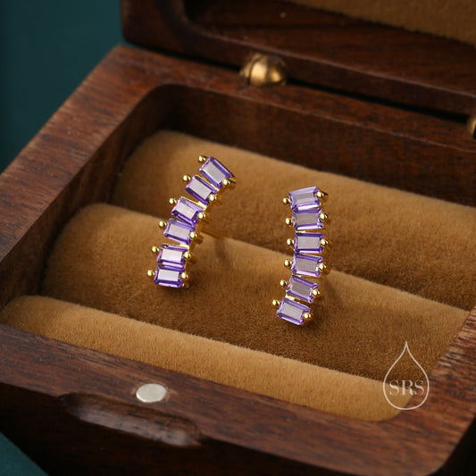Sale!Amethyst Purple Baguette CZ Stud Earrings in Sterling Silver, Silver or Gold, Purple Earrings, Chunky Amethyst Bar Earrings