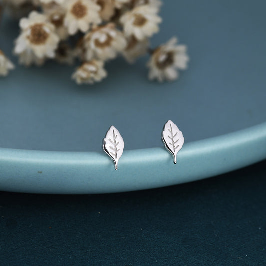 Tiny Leaf Stud Earrings in Sterling Silver, Silver or Gold, Stacking Earrings, Extra Small Stud, Nature Inspired Plant Earrings