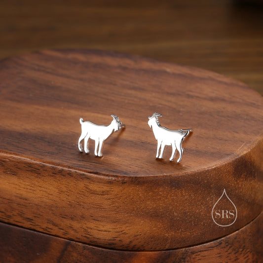 Tiny Goat Stud Earrings in Sterling Silver, Silver or Gold or Rose Gold, Sterling Silver Goat Earrings, Sheep Earrings, Farm Earrings