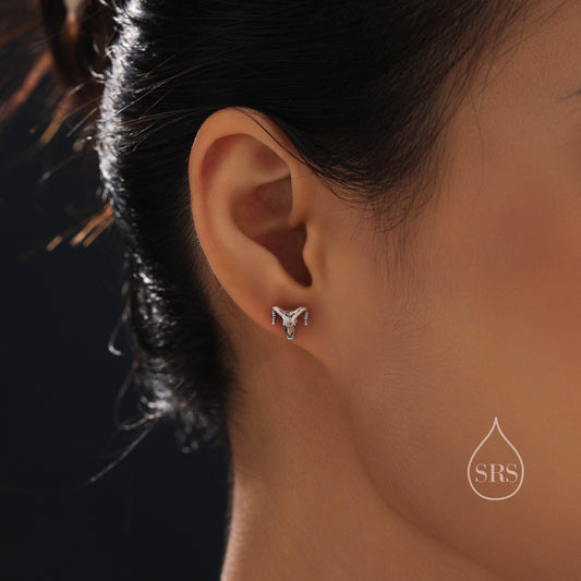 Sterling Silver Tiny Ram Skull Stud Earrings, Silver or Gold or Rose Gold, Ram Skeleton Earrings in Sterling Silver Ram Head Earrings,