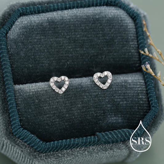 Tiny Open Heart Stud Earrings in Sterling Silver, Silver or Gold, CZ Heart Stud