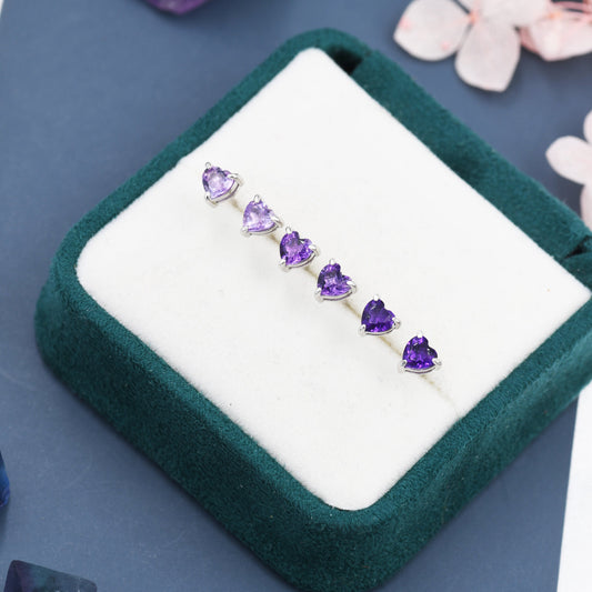 Genuine Amethyst Heart Stud Earrings in Sterling Silver, Natural Amethyst Heart Stud Earrings, Tiny Heart Earrings