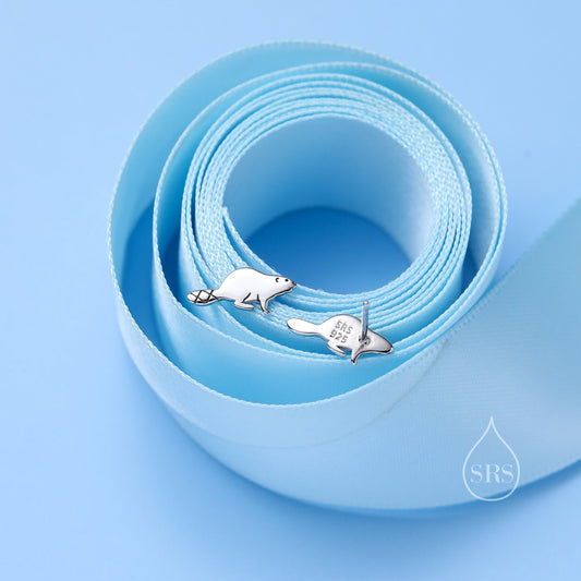 Dainty Beaver Stud Earrings in Sterling Silver, Silver or Gold or Rose Gold, Tiny Silver Beaver Earrings