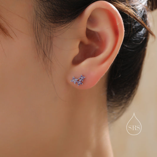 Asymmetric Hydrangea Flower Bouquet CZ Stud Earrings in Sterling Silver, Silver, Gold or Rose Gold, Mismatched Purple Flower Earrings