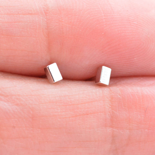 Sterling Silver Minimalist Tiny Short Bar Cube Square Geometric Stud Earrings, Dainty and Delicate, Classic and Elegant Jewellery