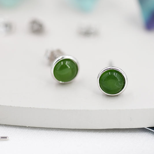 Sterling Silver Natural Jade Stud Earrings, 3mm, 4mm or 5mm, Genuine Jade Gemstone Stud, Bezel, Minimalist Style, Jasper Jade, Jasper Stone