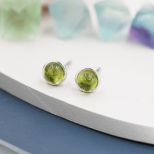 Sterling Silver Natural Peridot Stud Earrings, 4mm or 5mm, Genuine Peridot Gemstone Stud, Bezel, Minimalist Style, August Birthstone