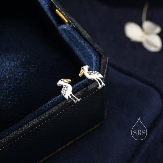 Sterling Silver Shoebill Stud Earrings, Cute Shoe Bill Stork Stud Earrings, Fun and Quirky Shoebill Jewellery