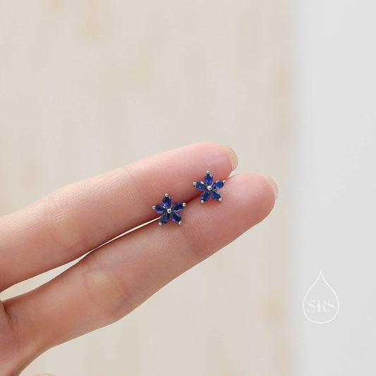 Sterling Silver CZ Flower Stud Earrings, Silver or Gold, Forget Me Not Flower CZ Earrings, Flower Stud