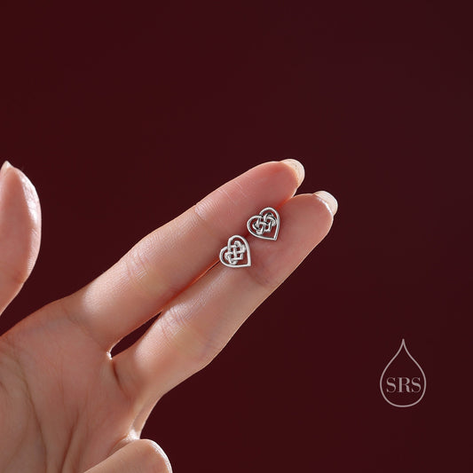 Celtic Knot Heart Stud Earrings in Sterling Silver, Silver, Gold or Rose Gold, Unicorn Earrings, Celtic Trinity Knot Heart Earrings