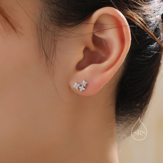 Asymmetric Hydrangea Flower Bouquet CZ Stud Earrings in Sterling Silver, Silver, Gold or Rose Gold, Mismatched CZ Flower Stud Earrings