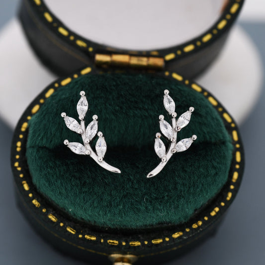 CZ Leaf Stud Earrings in Sterling Silver, Silver or Gold, Olive Branch Earrings, Olive Leaf Earrings, Nature Inspired