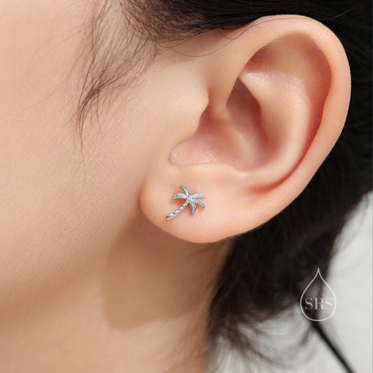 Sterling Silver Tiny Palm Tree Stud Earrings Earrings, Silver or Gold or Rose Gold, Small Palm Tree Earrings, Coconut Tree