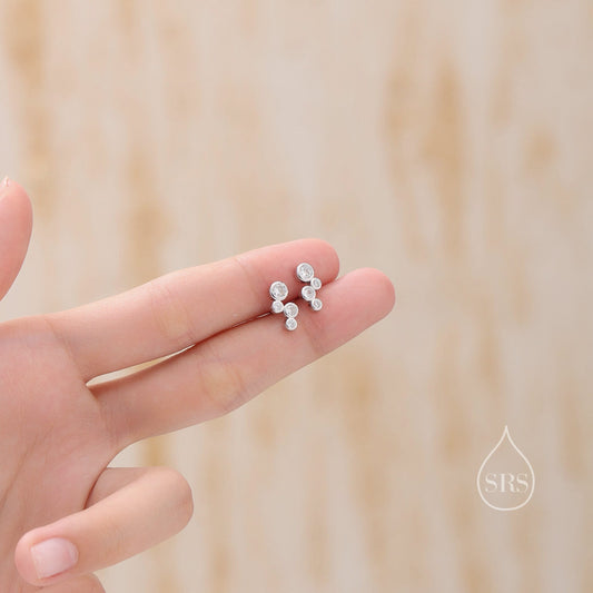 Clear CZ Bubble Cluster Stud Earrings in Sterling Silver, Silver or Gold, Bezel CZ Cluster Earrings, CZ Wing Earrings, Mini Crawler