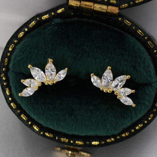 CZ Cluster Stud Earrings in Sterling Silver, Silver or Gold, Dainty Marquise Crystal Mini Crawler Earrings, Bridesmaid's Jewellery