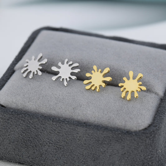 Water Splash Stud Earrings in Sterling Silver, Silver or Gold, Organic Shape Earrings