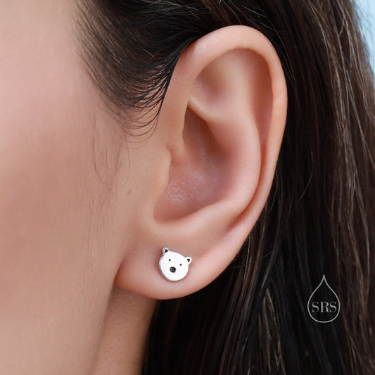 Sterling Silver Polar Bear Stud Earrings, Silver Polar Bear Earrings, Bear Earrings, Tiny Polar Bear Stud, Cute Polar Bear Stud Earrings