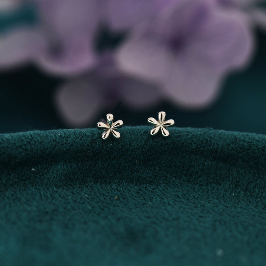 Extra Tiny Flower Stud Earrings in Sterling Silver, Forget Me Not Floral CZ Earrings, Silver or Gold, Flower Earrings