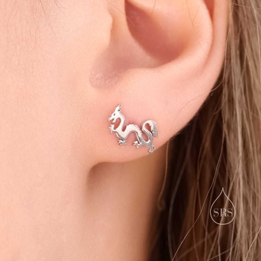Tiny Japanese Dragon Stud Earrings in Sterling Silver, Silver or Gold or Rose Gold, Sterling Silver Dragon Earrings