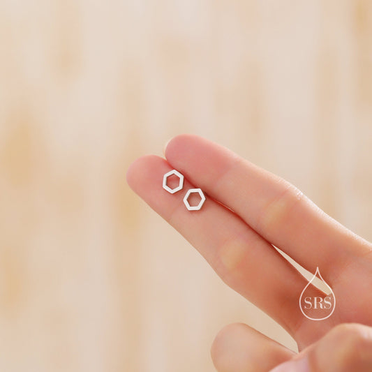 Sterling Silver Open Hexagon Stud Earrings, Silver, Gold and Rose Gold Finish Minimalist and Geometric Design