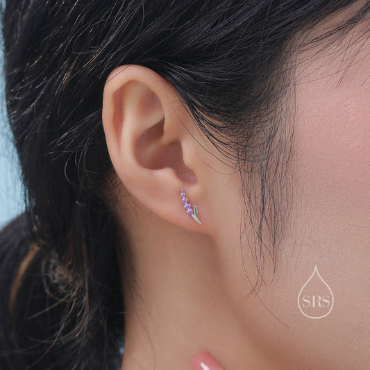 Super Tiny Sterling Silver Lavender Stud Earrings, Handpainted Enamel Lavender Earrings, Silver or Gold, Purple Lavender Earrings