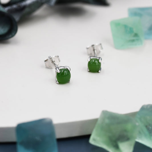 Natura Jasper Jade Stud Earrings in Sterling Silver, Semi-Precious Gemstone Earrings, 4mm, 4 prong Genuine Jade Earrings