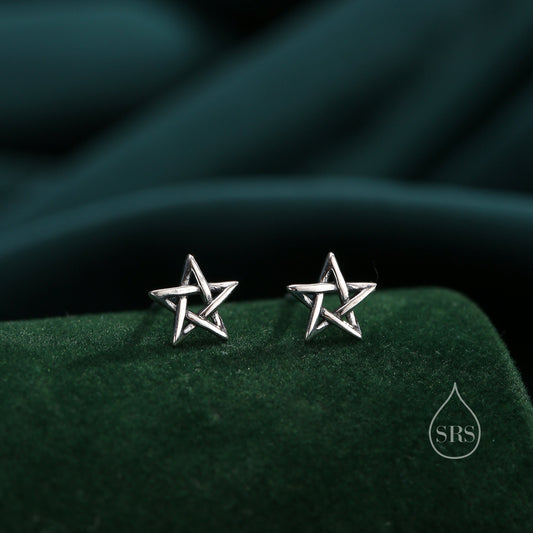 Pentagram Stud Earrings in Sterling Silver, Polished or Oxidised Finish, Pentagram Star Earrings, Star Stud