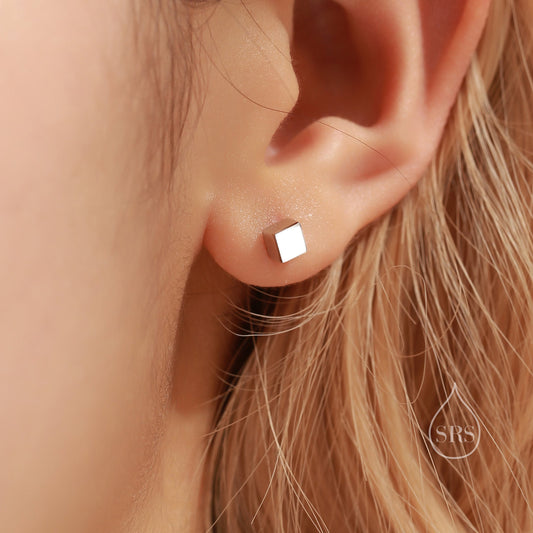 Tiny Little Cube Stud Earrings in Sterling Silver, Silver, Gold or Rose Gold, Small Cube Earrings, Geometric Stacking Earrings