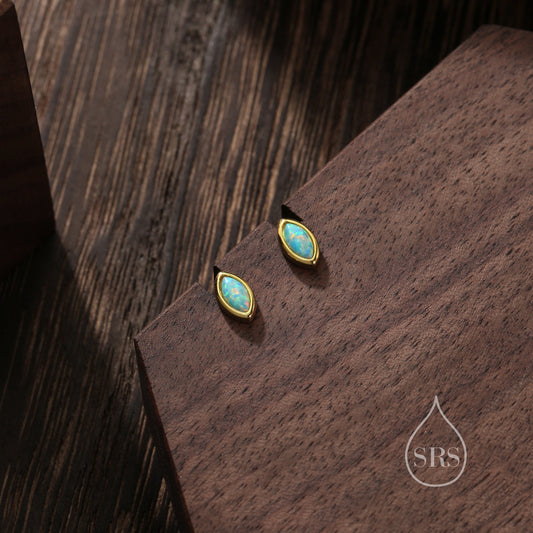 Sale!Sterling Silver Aqua Green Opal Marquise Stud Earrings, 3x6mm Marquise Stud, Lab Blue Opal Tiny Earrings, Gold or Silver, Minimalist