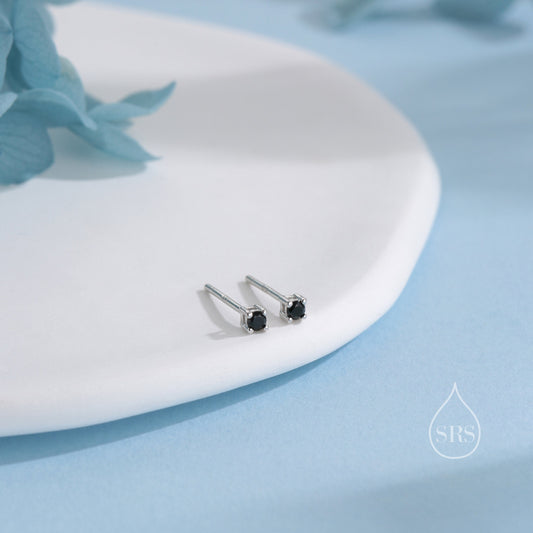 Extra Tiny 2mm Black CZ Stud Earrings in Sterling Silver, Silver or Gold, Barely Visible Stud Earrings, 2mm Black Earrings