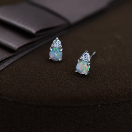 Opal with CZ Stud Earrings in Sterling Silver, Silver, Gold or Rose Gold, Vintage Inspired