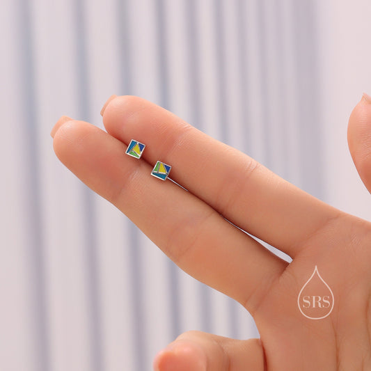 Enamel Square Stud Earrings in Sterling Silver, Hand Painted Enamel Square Earrings, Stained Glass Inspired Square Stud