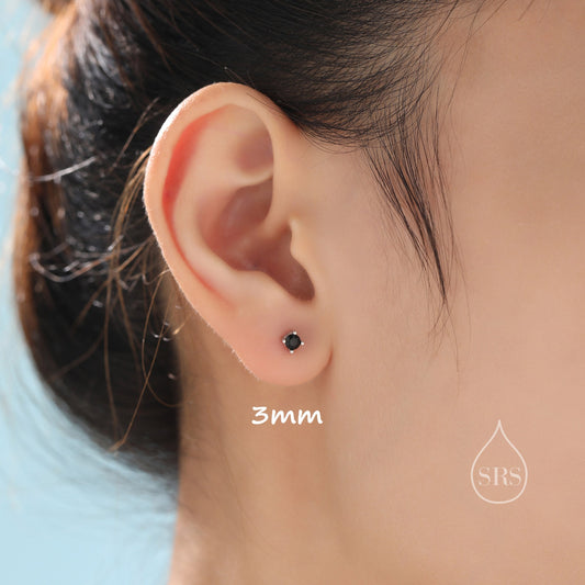 Black CZ Stud Earrings in Sterling Silver, Available in 3mm, 4mm, 5mm, Brilliant Cut Black CZ Earrings, Minimal CZ Stud Prong Set