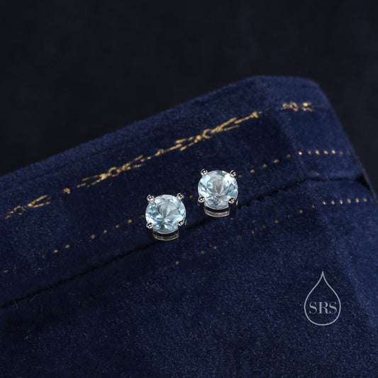 Sterling Silver Natural Topaz Stud Earrings, 5mm Prong Set, Genuine Blue Topaz Gemstone Stud, Minimalist Style,
