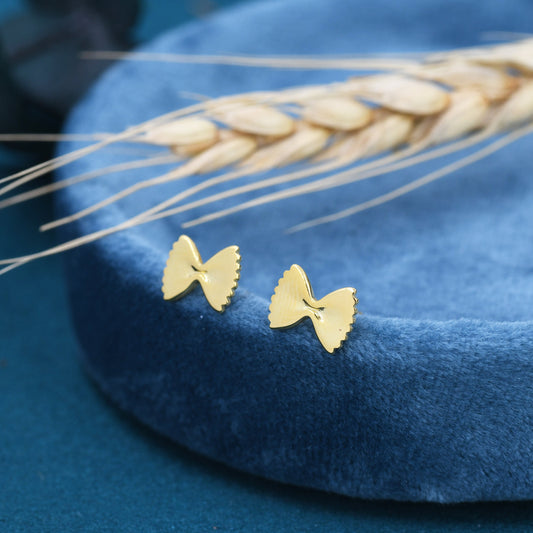 Farfalle Pasta Shape Stud Earrings in Sterling Silver, Ribbon Bow Earrings, Playful and Quirky Food Jewellery, Silver or Gold