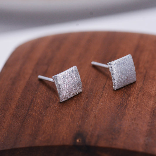 Curved Square Stud Earrings in Sterling Silver with Textured Finish, Minimalist Geometric Stud